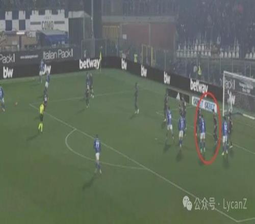 科莫一记斜传打向米兰的左路,靠着锋线两点压制米兰后卫,右后卫范德布雷普特拿球长驱直入畅通无阻并轻松起脚,莱奥换位在左路却没有起到相应的防守作用。直到第55分钟米兰2:1完成反超,阵型全面后撤收缩后,米兰10号才真正开始防守。