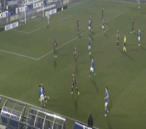 39′45″沃伊沃达右路晃开巴特萨吉后传中,中路达库尼亚从弗法纳和托莫里之间杀出,近距离射门被麦尼昂下意识挡开并靠二次反应破坏了补射。而这个熟悉的进攻跑位套路上一场戈森斯就完成了两次之多。