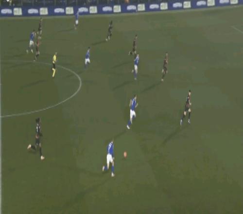 科莫门将布特斯一脚直塞就让队友直接面对米兰的后卫。