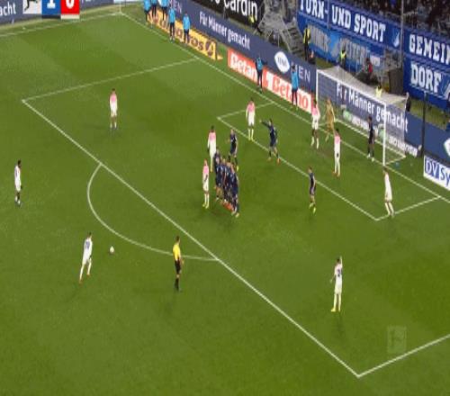 第9分钟,布格尔任意球直接破门,霍芬海姆1-0勒沃库森