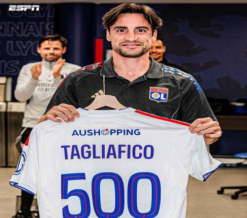 塔利亚菲科解锁俱乐部生涯500场里程碑,里昂俱乐部送球衣表彰