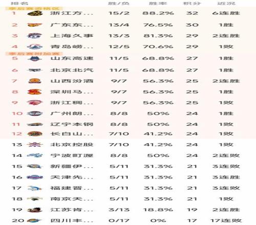 CBA常规赛第17轮结束了4场比赛,最新积分榜如下!